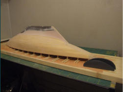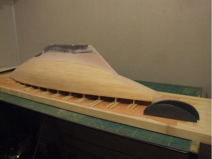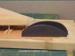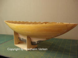 erhöhen, vergrößerte ich das Ruder um etwa 25 %. Da dies aus Polyprophylen gefertigt ist braucht es auch später nicht mit laminiert zu werden. Der Rumpf war