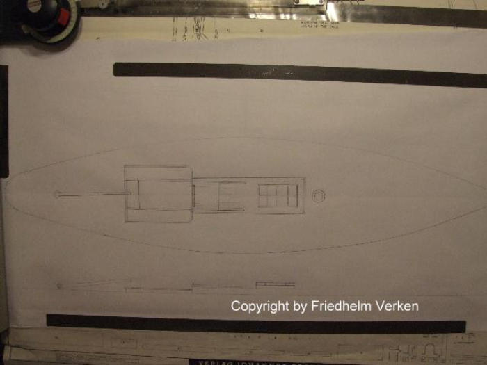 meiner Vorstellung. Auf einer verlängerten Gracia Zeichnung skizzierte ich mir Ort und Größe der Aufbauten und natürlich den Teil, von wo aus der Kapitän sein