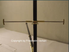 12 mm Rundmaterial eingearbeitet und mit Hilfe einer Aluminium Niete befestigt. Die beiden abnehmbaren Sailings sind in den gelöteten Messingröhrchen steckbar.