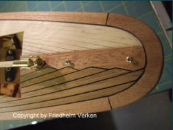 Für die Deckbeplankung wählte ich Mahagoni und Burma Teak. Diese Kombination kam den Originalen am nächsten. In Verbindung mit Messingbeschlägen ergab