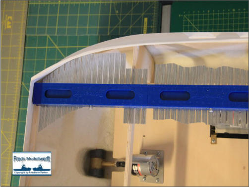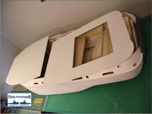 schleifer an das innere Rumpfmaß angepasst. Es ist von Vorteil die hintere Decks-Öffnung vor dem Anpassen auszuschneiden, um beim Einbringen