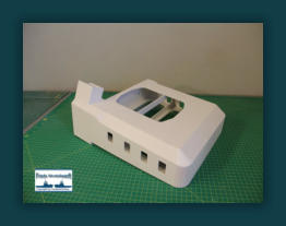 Die unteren Rundungen am Aufbau werden durch geschlitzte Polystyrol Teile und Feinspachtel aufgefüllt und anschließend verschliffen. Später habe
